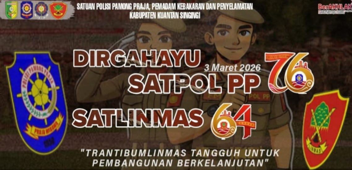 Keluarga Besar Satuan Polisi Pamong Praja, Pemadam Kebakaran dan Penyelamatan Kabupaten Kuantan Singingi beserta Staf dan Jajaran mengucapkan: “Dirgahayu Satpol PP ke 76 dan Satlinmas ke 64,...